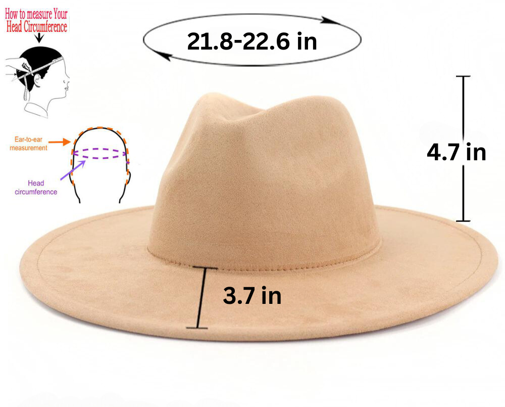 Designed to accommodate a range of sizes (approximately US 7 to 7-1/4), our Wide-Brim Fedora Hat ensures a comfortable fit for most. Refer to our sizing image to find your perfect match and embark on your journey of self-expression with confidence.