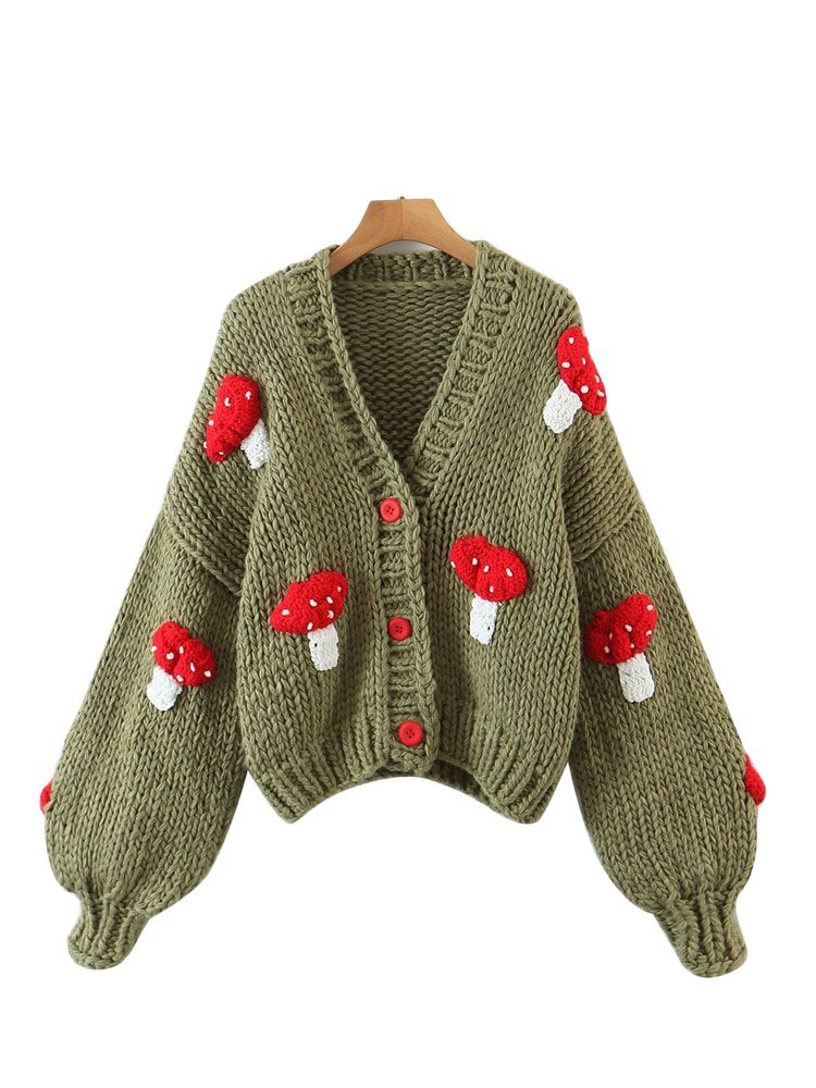 The magic lies in the details—and this hand-made sweater is brimming with it! So go ahead and make your everyday extraordinary—one mushroom at a time!