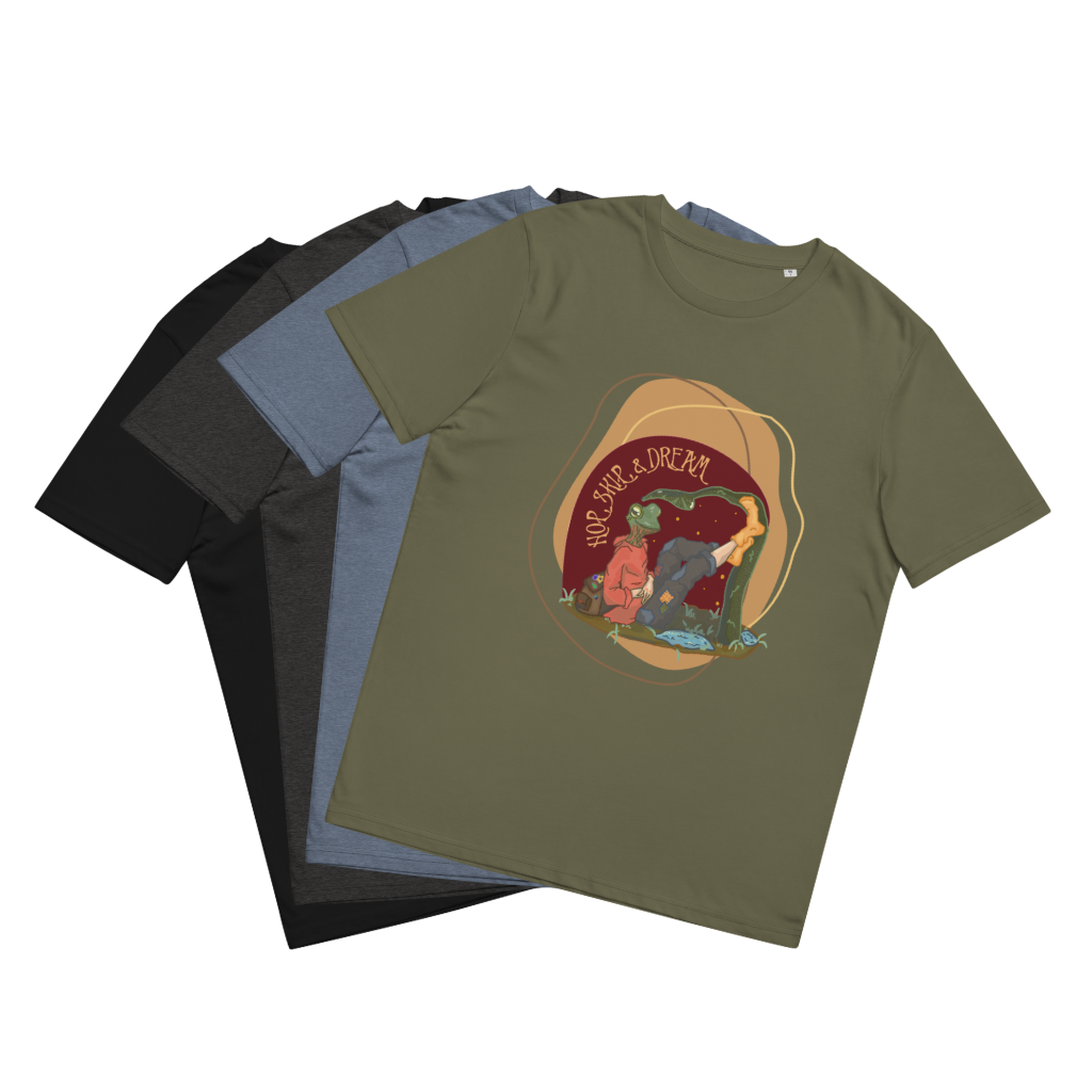 Immerse yourself in the lush fabric of our Hop, Skip, Dream T-Shirt and feel its soft embrace against your skin. Crafted from the finest organic cotton, it ensures a comfortable fit, making it the perfect companion for both leisurely lounging and exhilarating outdoor escapades.