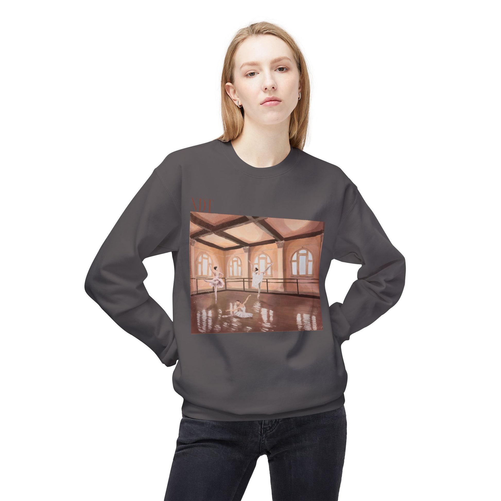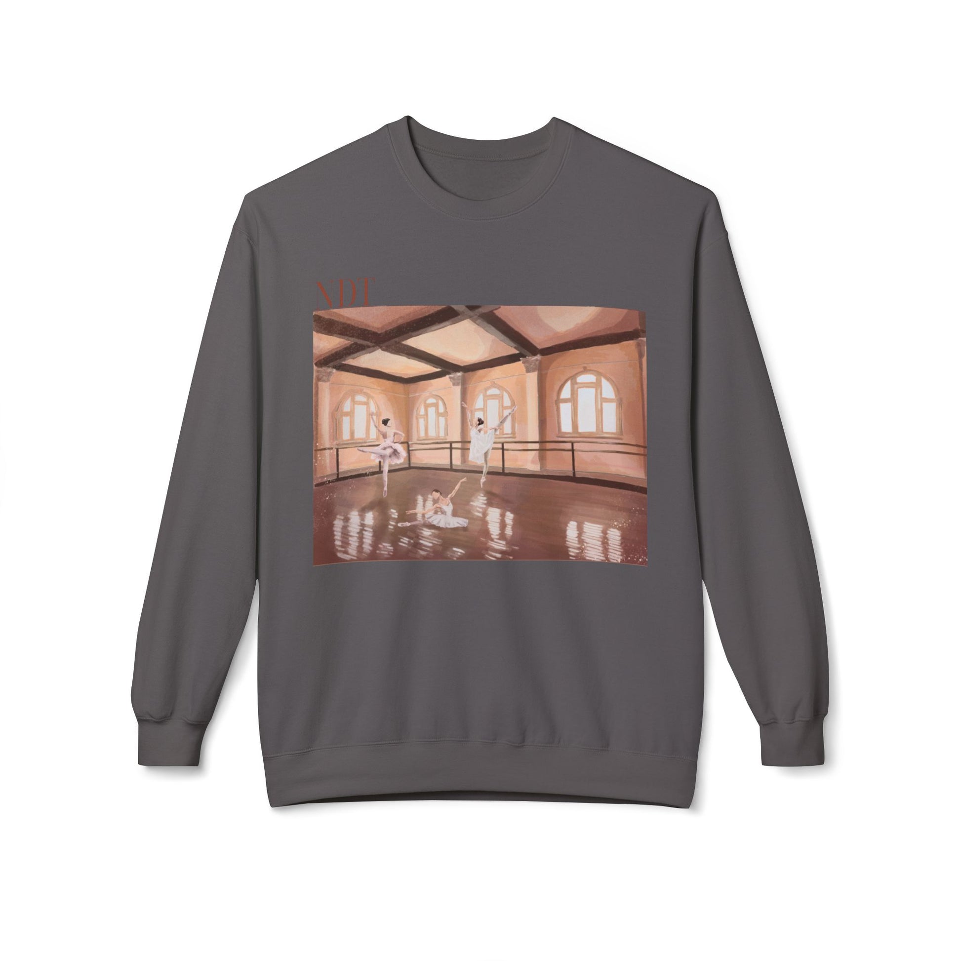 Stay cozy while showing off this beautiful image of Northern Dance Theatre's Studio 1 in this unisex sweatshirt. Crafted from a blend of 80% ring spun cotton and 20% polyester, with a brushed interior and 100% ring spun cotton face, it offers unmatched comfort and durability. Featuring a dropped shoulder design for a relaxed fit, this sweatshirt is not only stylish but also eco-conscious. Partnering with Better Cotton to enhance cotton farming worldwide, and made with OEKO-TEX certified low-impact dyes, you can feel good and look even better.