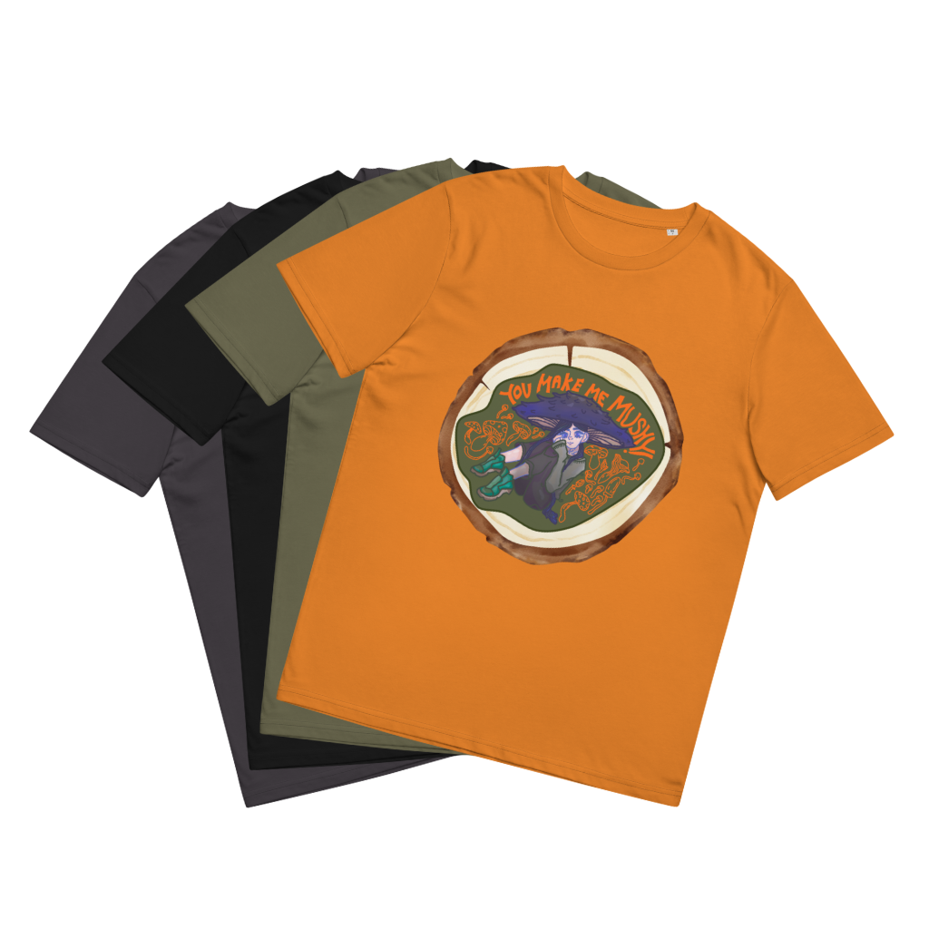 But this tee is more than just a stunning piece of art—it's a heartfelt expression of affection. With the words "You Make Me Mushy" proudly displayed on the shirt, it becomes a playful and endearing way to show someone special just how much they mean to you. It's a reminder that their presence in your life fills your heart with warmth and joy, evoking emotions that are as tender as a mushroom's delicate cap.
